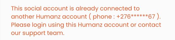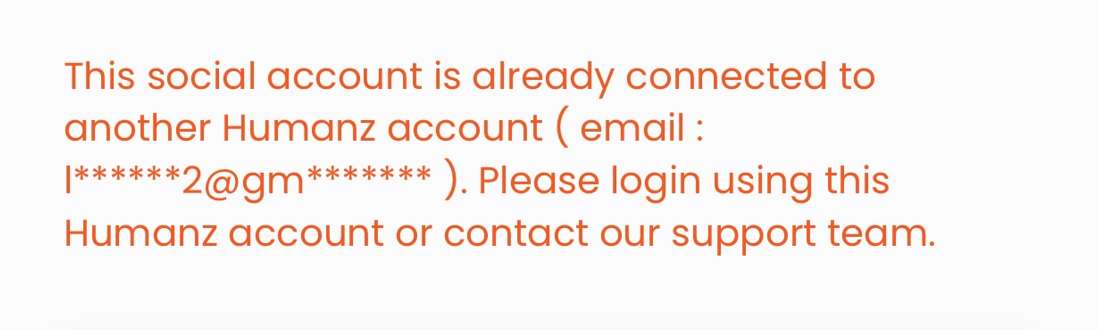 If you received a message saying that your social account is already linked to another Humanz account, it means you might have opened a Humanz account before, which is connected to one or more of your social media accounts.